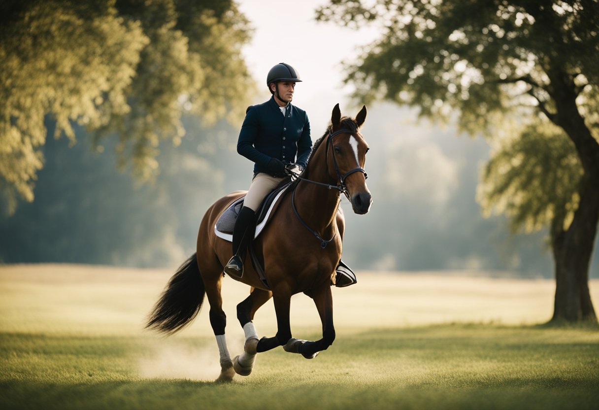 Et fredelig landskap med en hest og rytter som deltar i mentale treningsøvelser